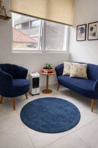 A Sala Serenidade destaca-se pelo espaço mais generoso e pela disposição estratégica dos móveis. É a escolha ideal para quem recebe mais de uma pessoa por vez ou para profissionais que gostam de um ambiente com maior amplitude e circulação. Um refúgio de paz no coração do seu atendimento.